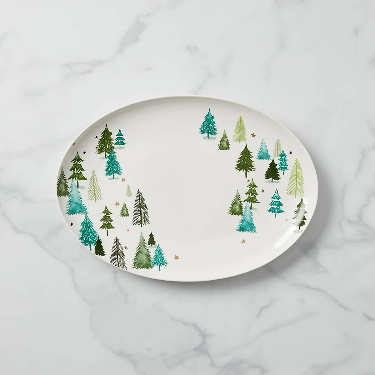 Part of the Balsam Lane Collection, this porcelain serving platter features whimsical pine trees surrounded by the subtle metallic sheen of stars.