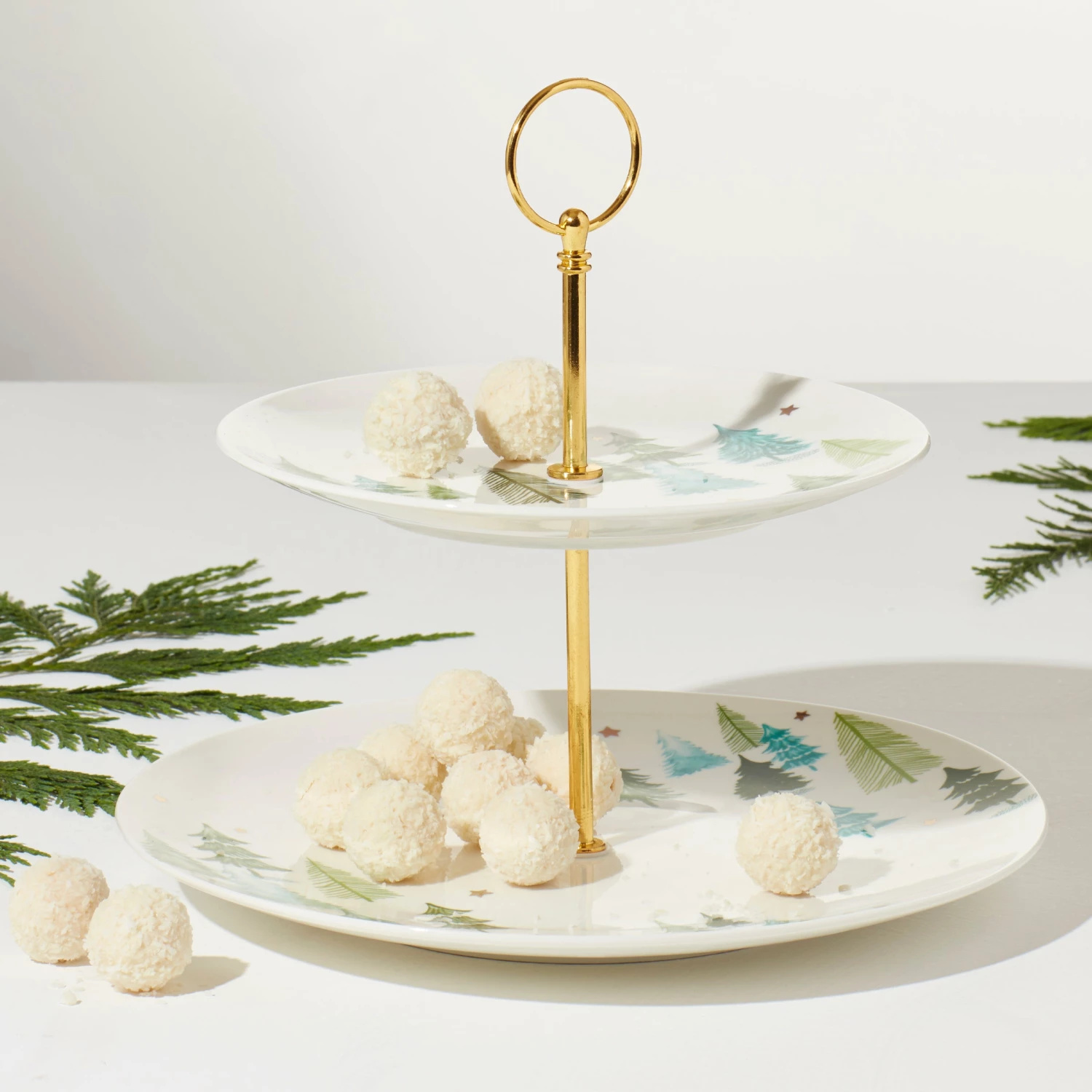 SKU: 6727924416609 Categories: Dinnerware, Eat Tags: 2 tiered serving plate, 894160, Allow Expedite Ship, Allow Gift Message, Allow Gift Wrap Flag, balsam lane, balsam lane server, collection_desc:Balsam Lane, color:Green