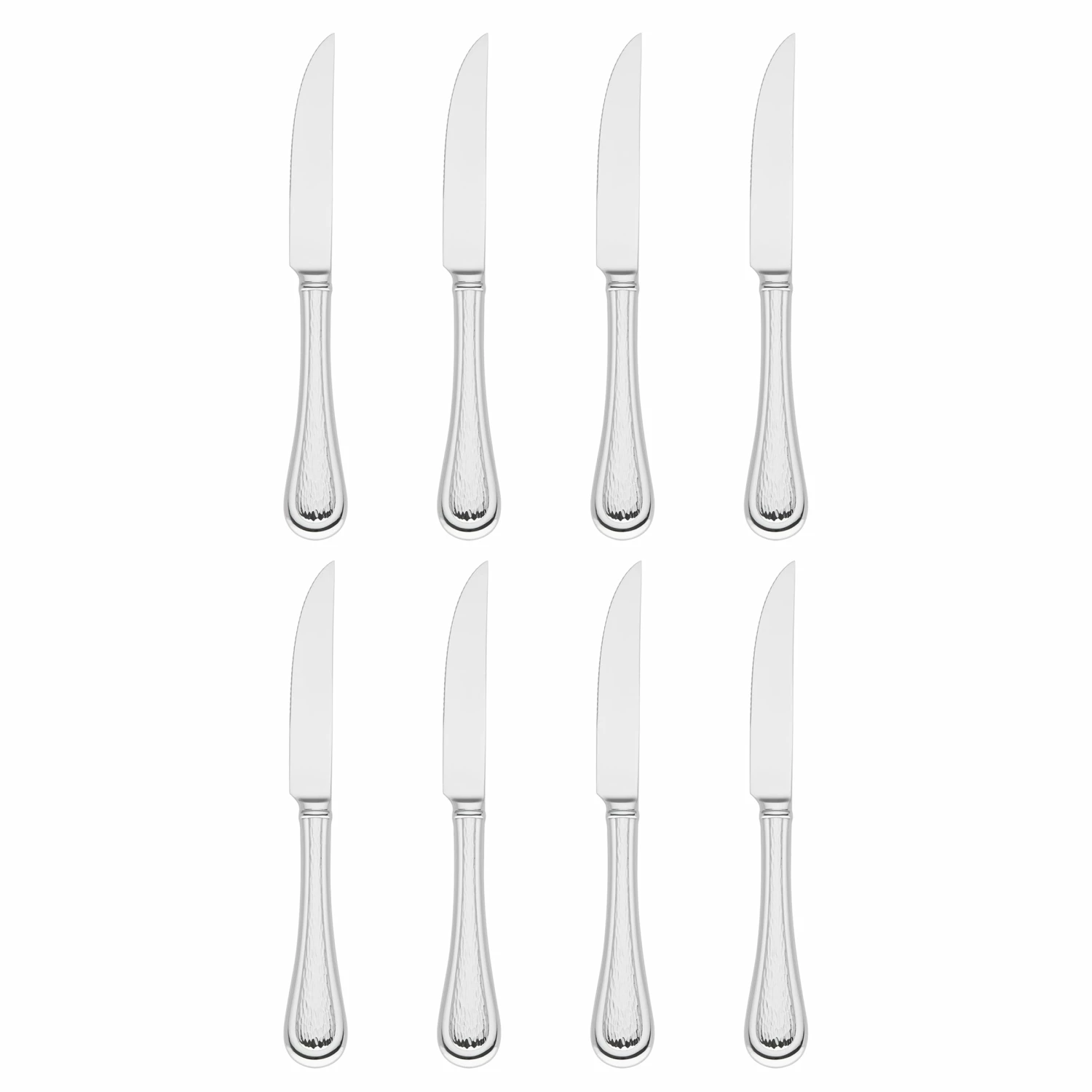 Expertly crafted of rust-resistant, 18/10 stainless steel, this Barlowe 8-piece steak knife set will maintain its shine year after year. The rounded handles are topped off with a textured finish for distinguished style. Plus, it’s dishwasher safe for added convenience.