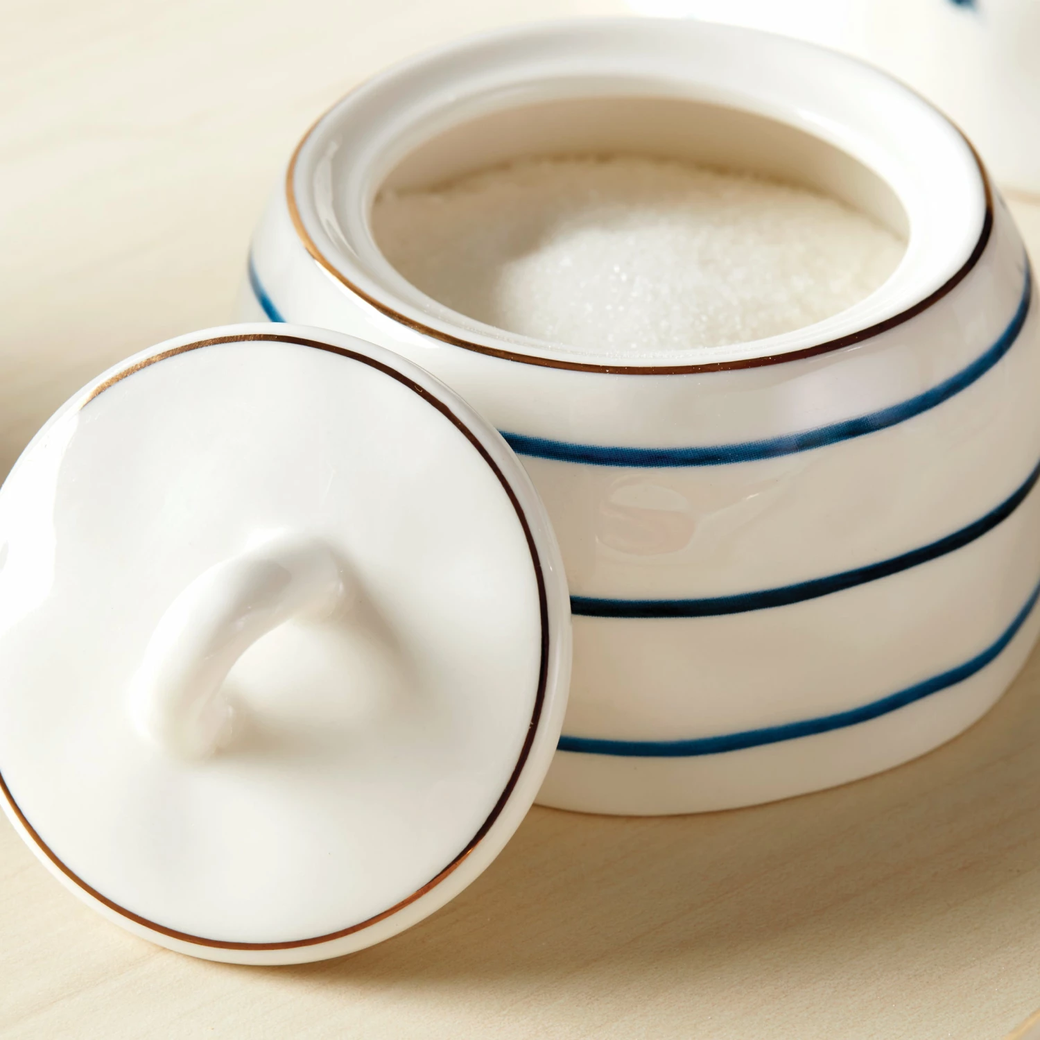 Enjoy tea for two with this charming set from our popular Blue Bay collection! Mix-and-match patterns of dots, stripes, ikats and leaves make up this sweet porcelain set, while organic, touchable textures give it a unique finish. Complete with a thin band of microwave-safe gold for a luxe touch. Comes with a teapot with lid, a sugar bowl with lid, a creamer and two cups with saucers.