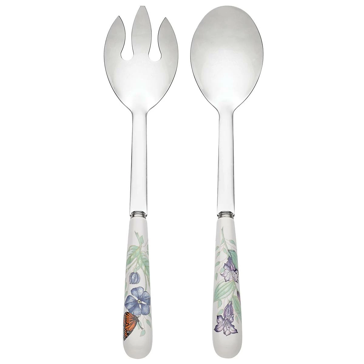 Lively butterflies buzz about vibrant flowers on the 2-Piece Serving Set handles. This trademark Lenox design features stainless steel with durable white ceramic porcelain handles. Fit for any occasion and an ideal complement to other Butterfly Meadow dinnerware, this set is dishwasher-safe for added convenience.