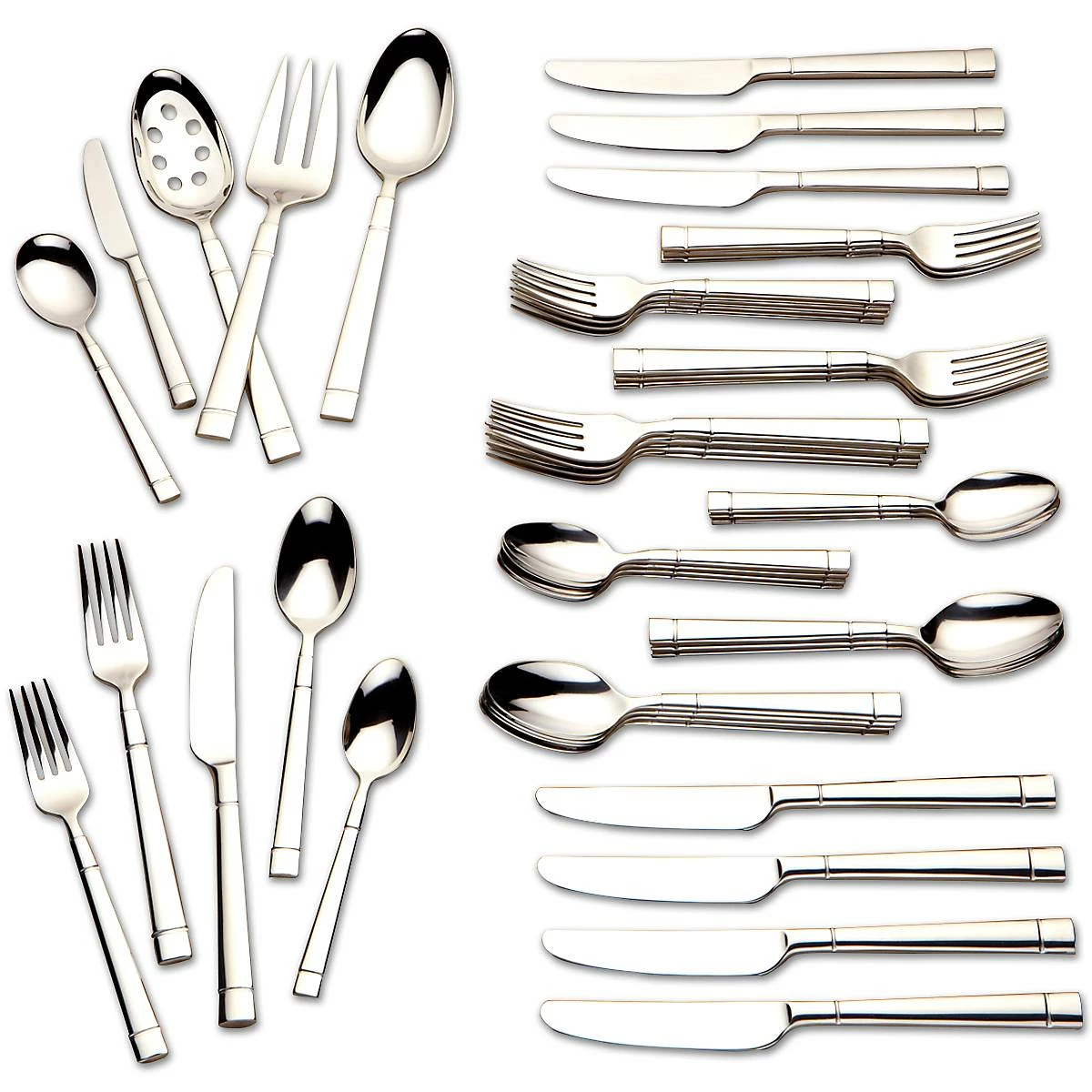 Groovy. That’s what you might want to call the kate spade new york Fair Harbor 45-pc Stainless Flatware Set with its stylish grooved handles. A grooved band encircles the top and bottom of each handle for a contemporary look that will complement both casual and formal dinnerware.