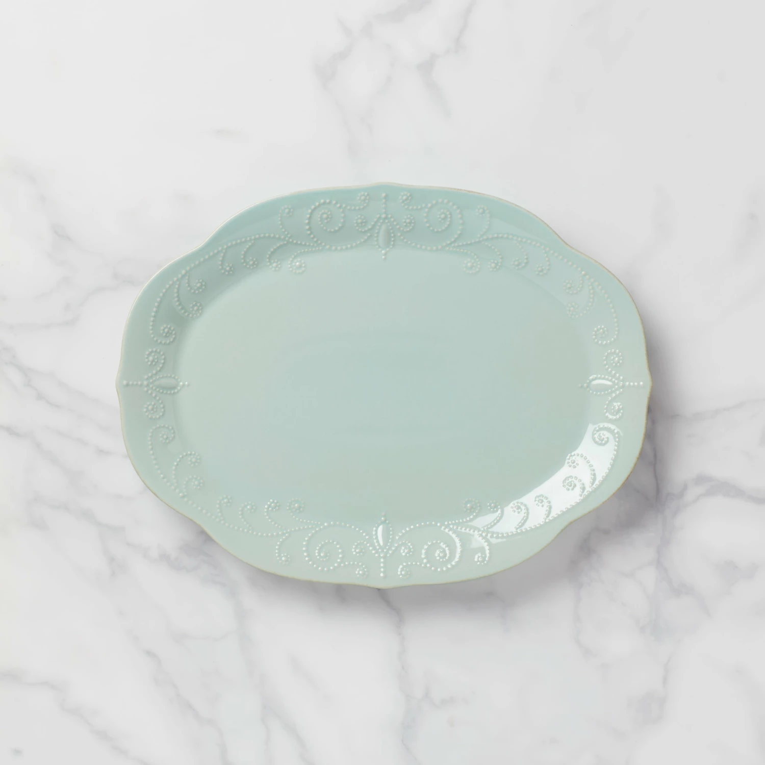 With its beaded motif resembling beautiful embroidery, the French Perle Marine Oval Platter is perfect for everyday, and dressy enough for more formal occasions.