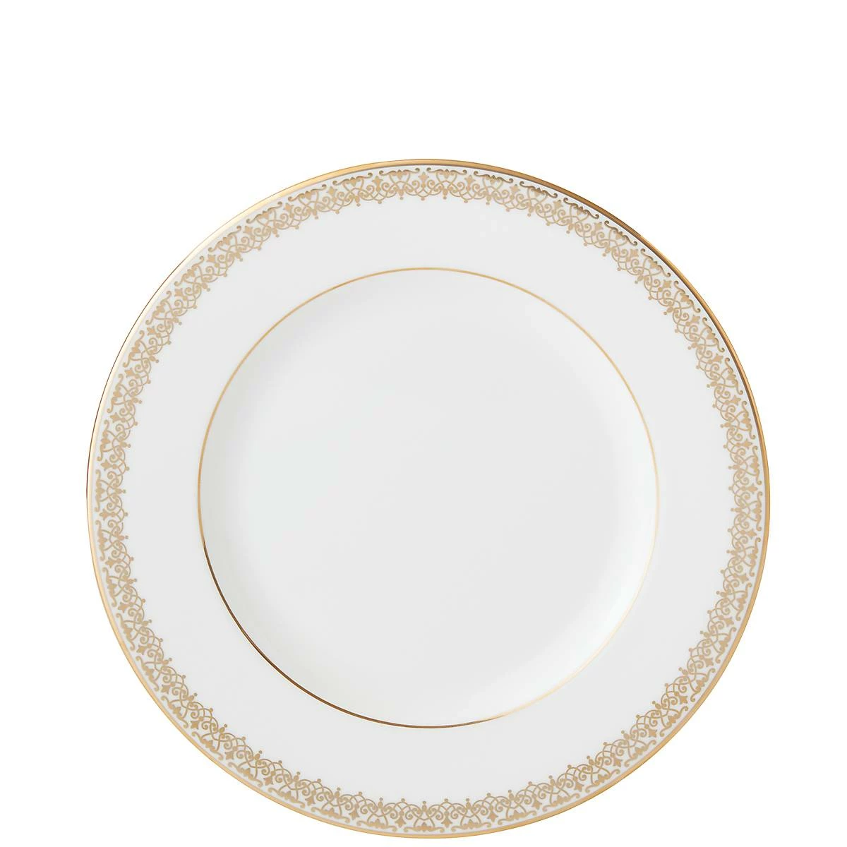 Ideal for a sandwich or salad course, the impressive Lace Couture Gold 8″ Salad Plate is crafted of durable and pristine white bone china, and is framed by a laced motif that is similar to a rich tapestry. This ornate salad plate is accented in precious 24-karat gold, and is dishwasher-safe for added convenience.
