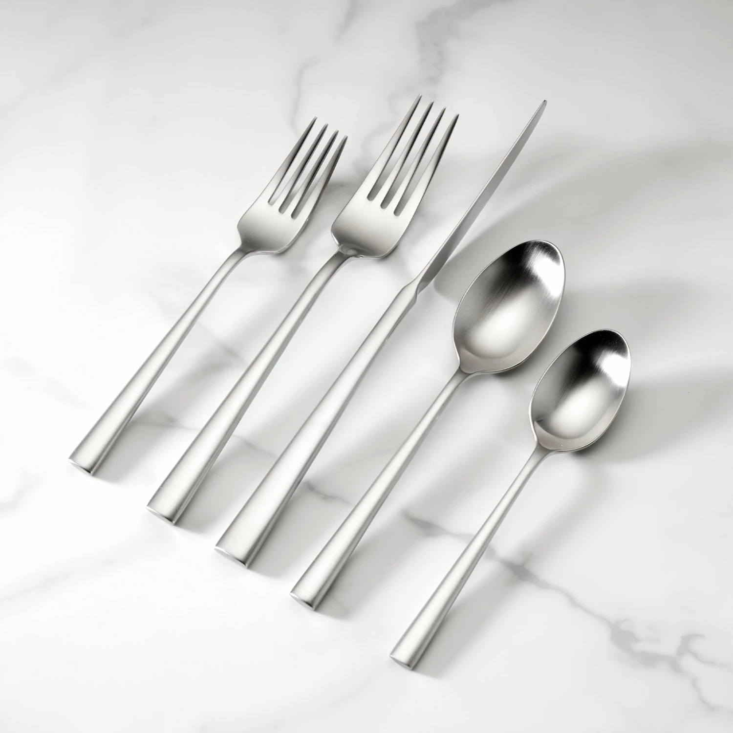 Fact: using proper place settings and serving sets just makes a meal taste better — whether it is beautifully homemade or around-the-corner takeout. Crafted from durable stainless steel, this sleek Malmo Satin 5-piece place setting will do nicely.