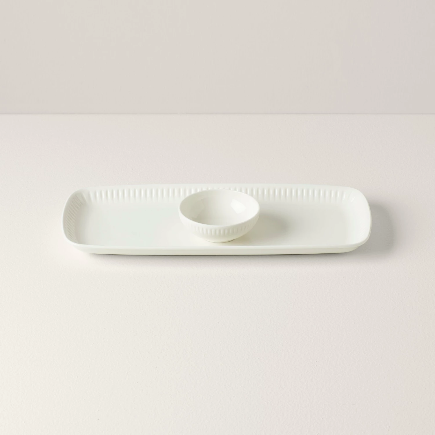 Set out chips, dip and other appetizers on this tray and bowl set from our Profile collection. Crafted of pristine white porcelain, it’s designed to be the classic serveware starter set every home or apartment needs for hosting!