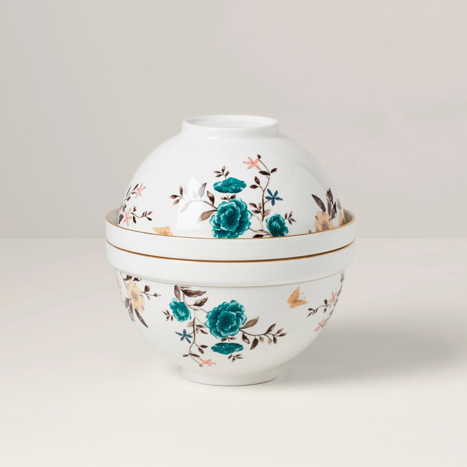Everyone’s favorite nesting dinnerware set is now available in our Sprig & Vine collection. Designed after English gardens and lush scenes of nature with a thin gold metallic accent. Includes six bowls and two plates hidden inside. Assembled it’s a conversation starter, but take it apart and it’s functional!