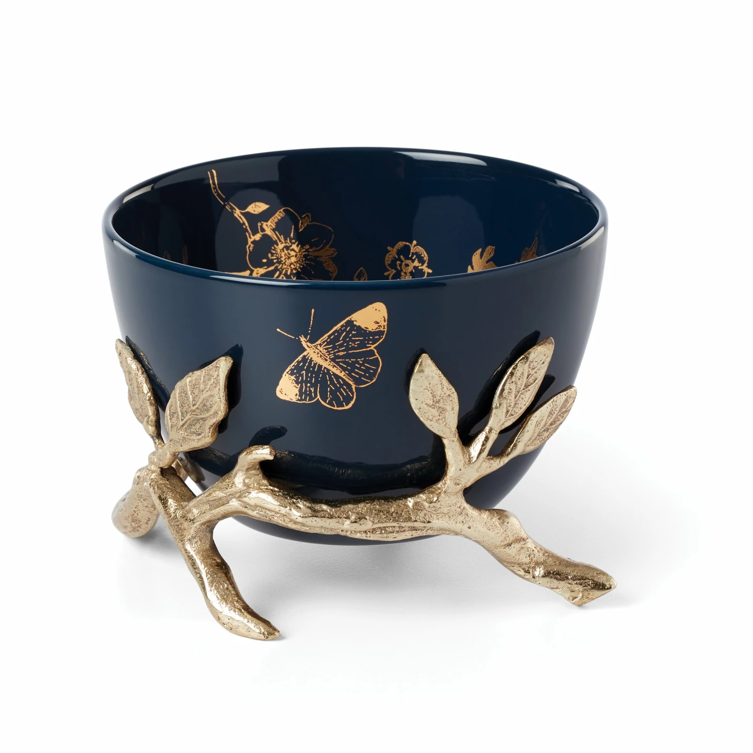 Add a unique accent to your table with this floral bowl from our Sprig & Vine collection. Sprig & Vine combines the beauty of vintage textiles with the bright botanicals of a lush English garden. This bowl sits in gleaming branches, a unique touch that can’t be missed.