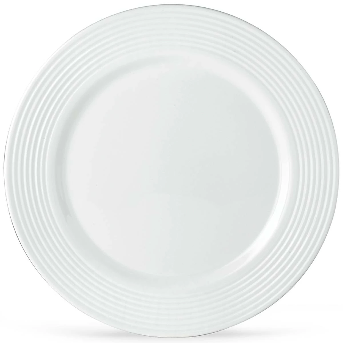 The Tin Can Alley Four-Degree Dinner Plate adopts the tin can’s emblematic corrugated rings on durable white porcelain for a simple, aesthetic design. This dishwasher and microwave-safe item suits any occasion and complements a variety of dinnerware styles.