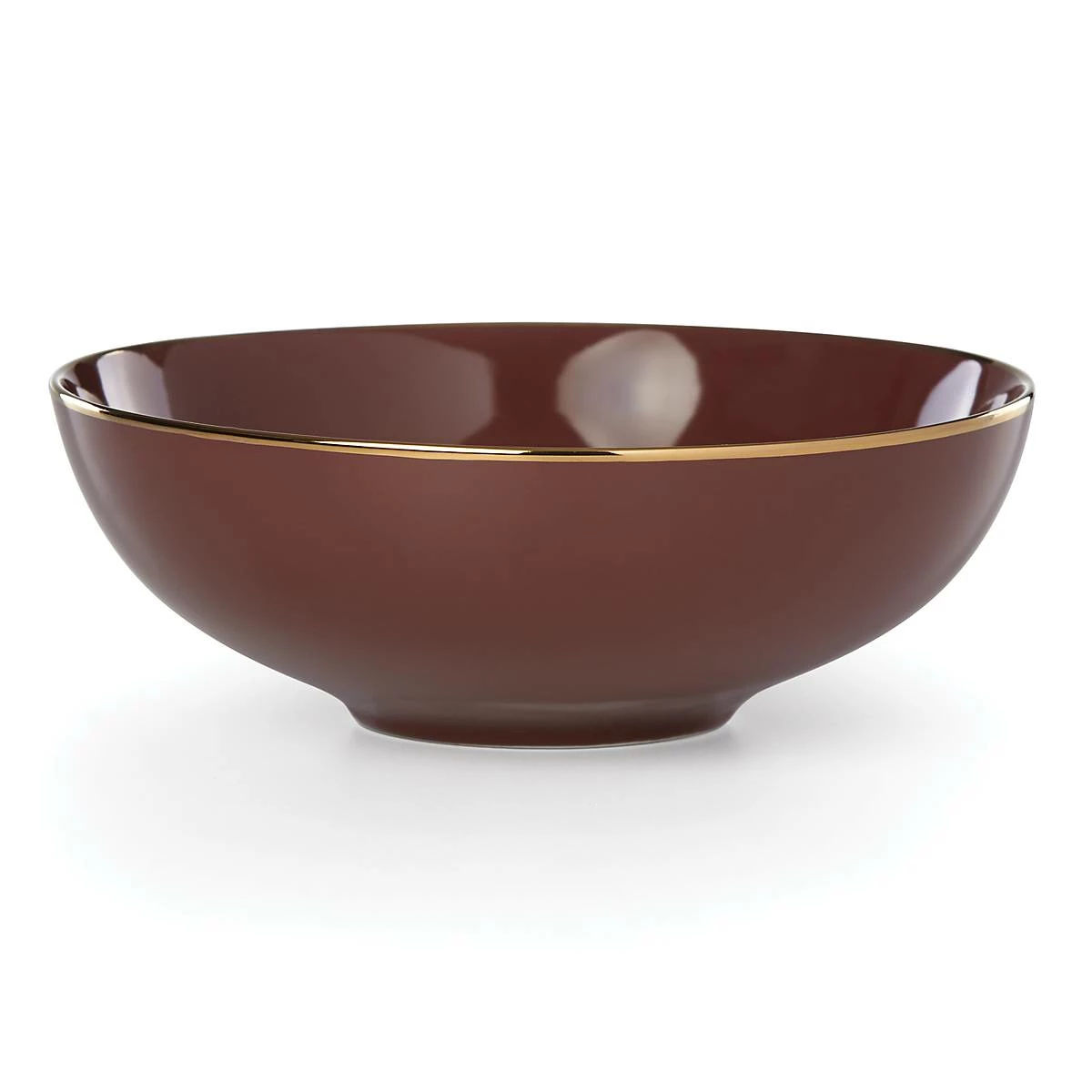 Made from dishwasher-safe, durable ceramic porcelain and microwave-safe gold accents, this fashion-forward piece is ideal for cereal, desserts and soups. The Trianna Taupe All-Purpose Bowl boasts a rich taupe hue with luminous gold accents.