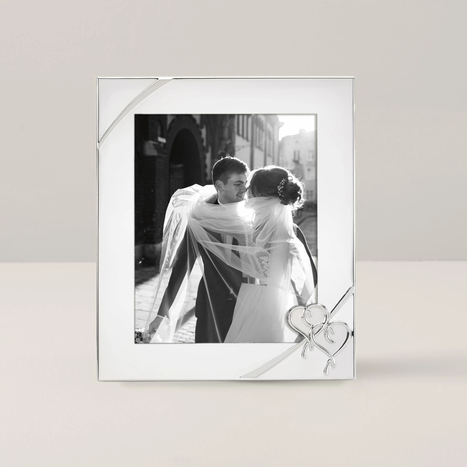This regal silver-plated 8 x 10″ True Love frame features two interlaced hearts in its corner and is ideal for displaying a heartfelt memory from a couple’s most important day.