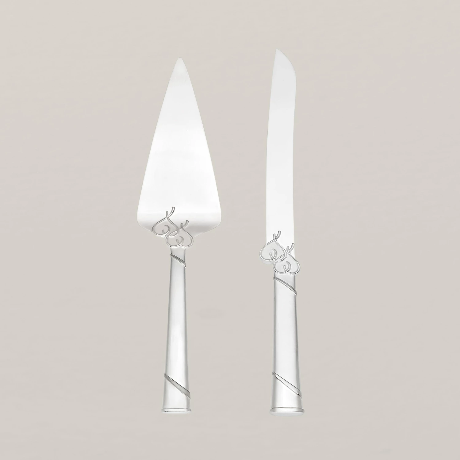 Romance beams from the True Love cake knife and server, featuring interlaced hearts that are carefully etched on the handles. Ideal as a wedding present or for use during a reception, the set gleams in shining silverplate.