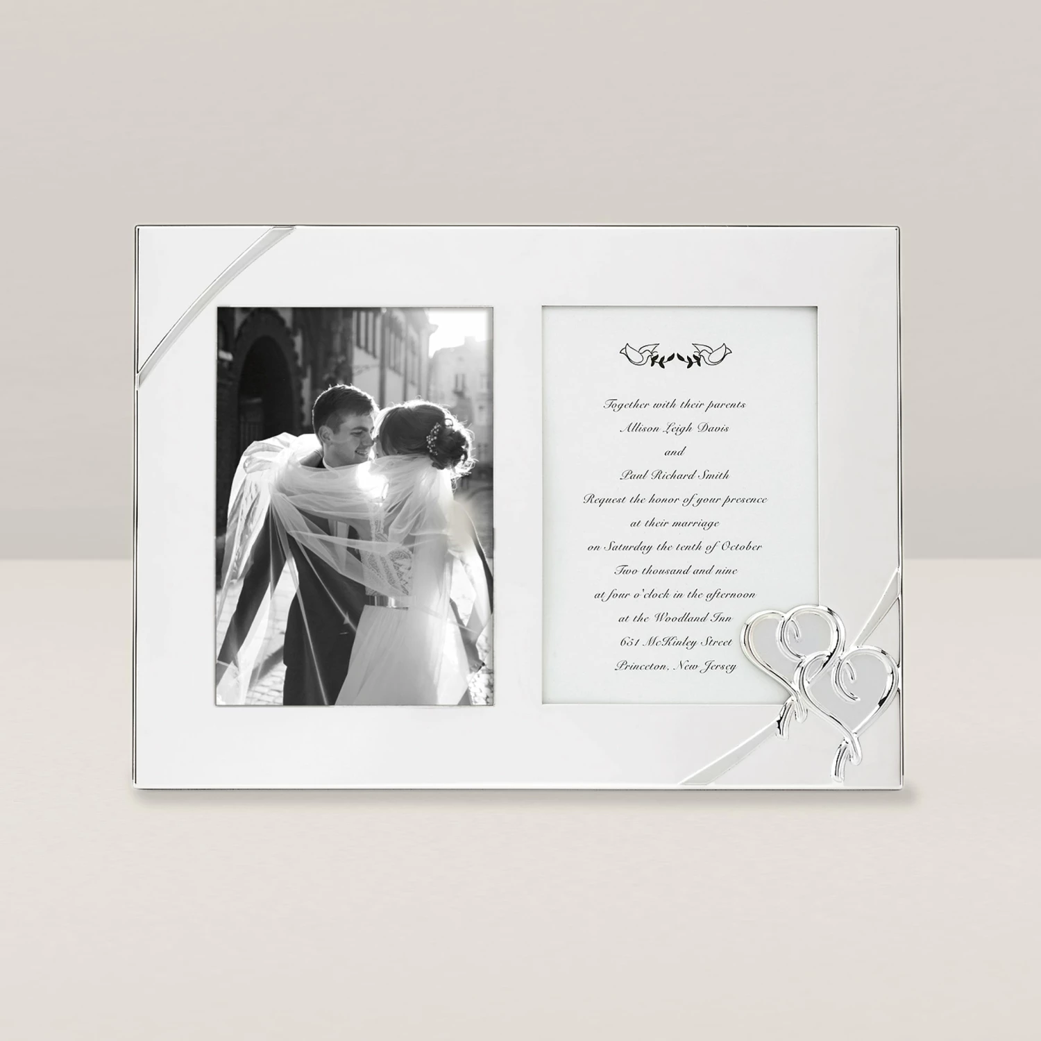 This silver-plated frame is ideal for showcasing a picture of the happy couple alongside their original wedding invitation. The interlaced heart motif adds to the romance and charm indicative of the True Love collection.