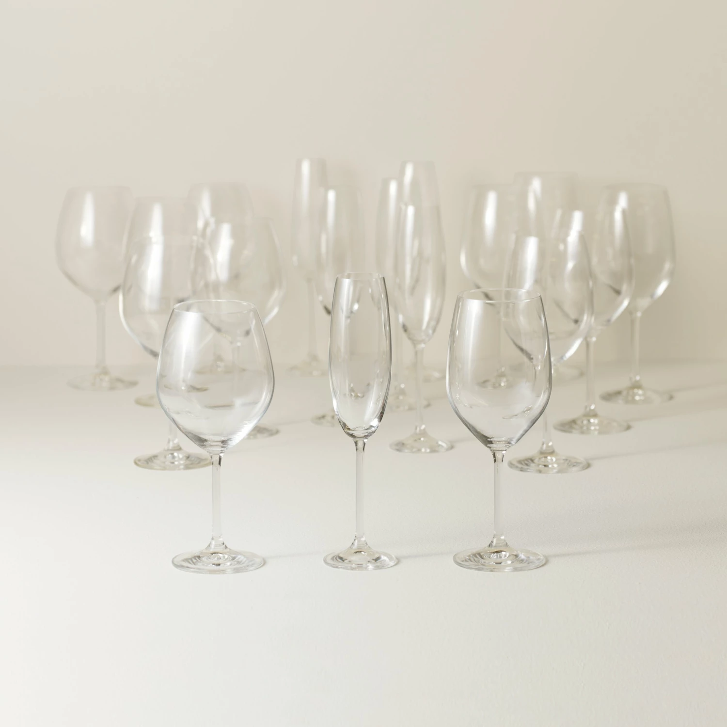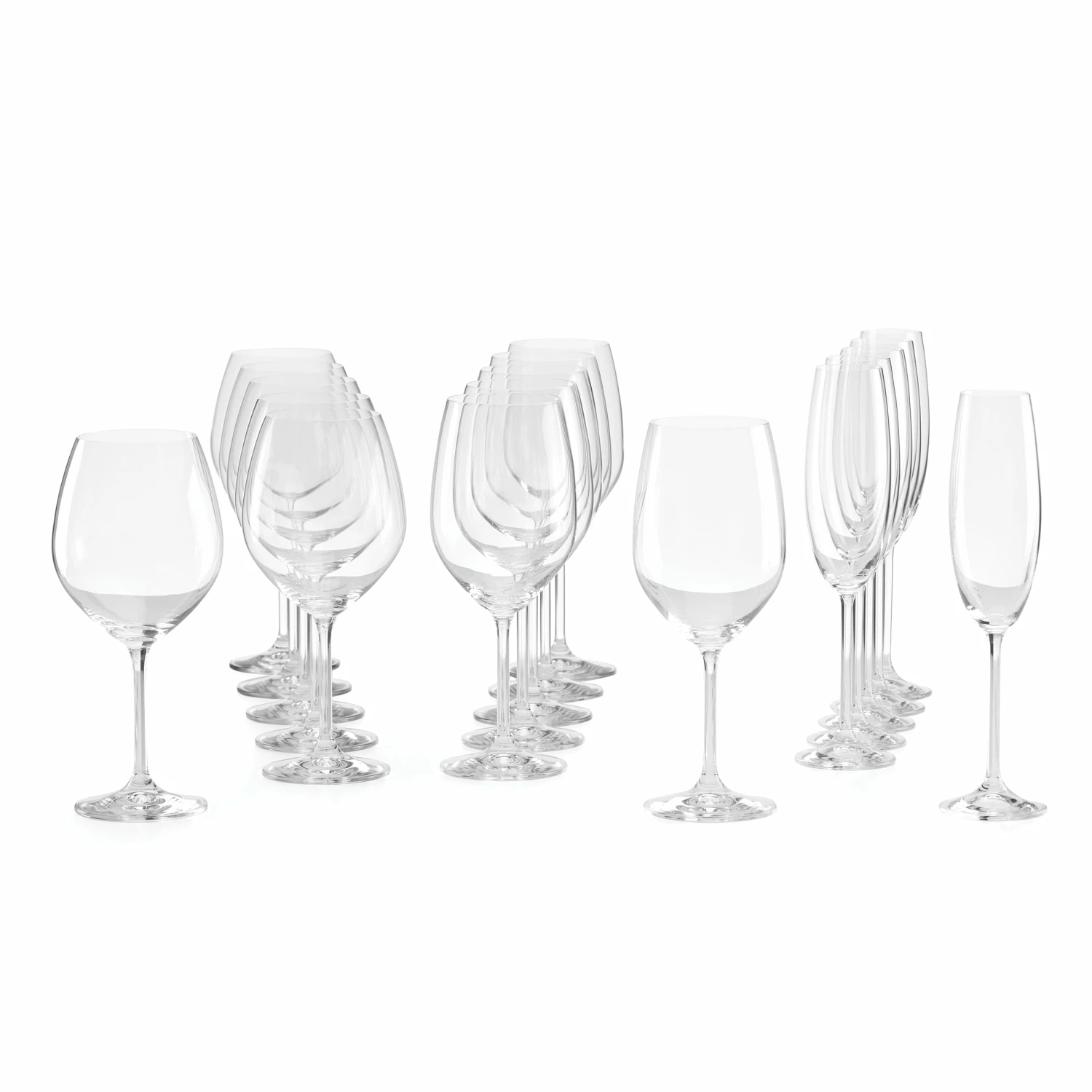 Your favorite Tuscany Classics glasses now come in a convenient 18-piece set. It’s the perfect collection to give and get for hosting holiday celebrations or building out your china cabinet. Crafted of durable and elegant European glass, the Tuscany Classics 18-piece glass set comes in an assorted collection of six champagne flutes, six white wine glasses and six red wine glasses. They are completely break-resistant and dishwasher safe!
