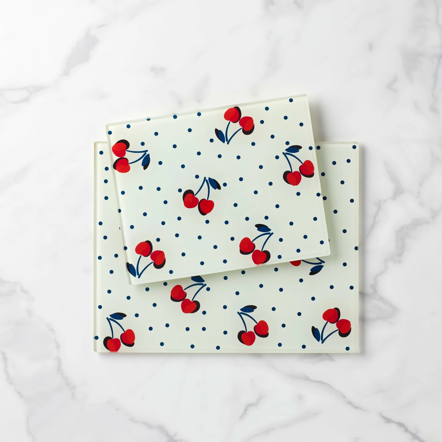 The playful cherry dot motif on Kate Spade New York’s glass two-piece prep board set will make cooking your go-to meal or a new recipe a little bit more fun.
