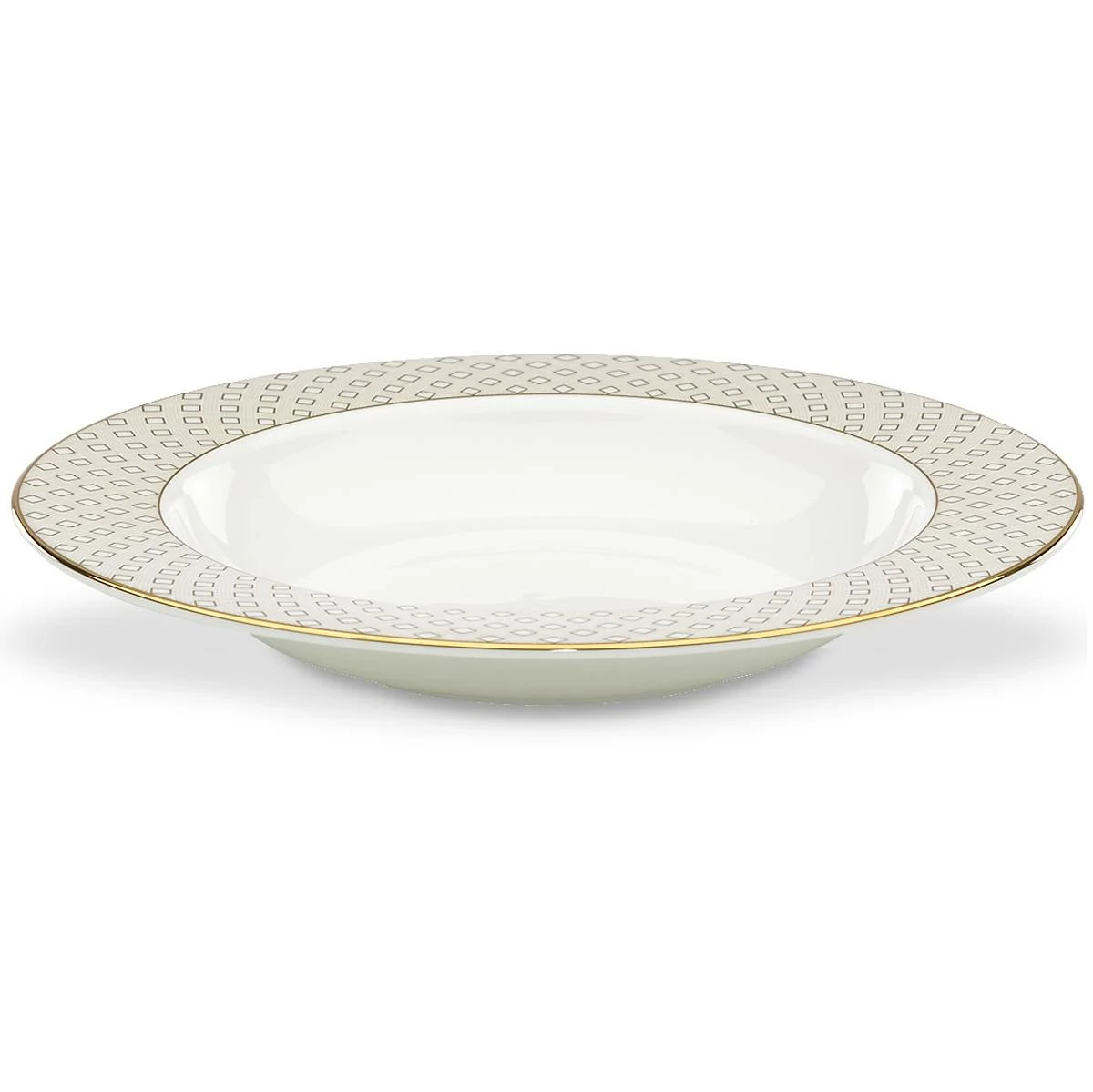 Add another layer to the eclectic design that is Waverly Pond dinnerware with the kate spade new york Waverly Pond Soup Bowl. Tan an gold lattice tie together with gold bands tie in the modern polish of kate spade new york.