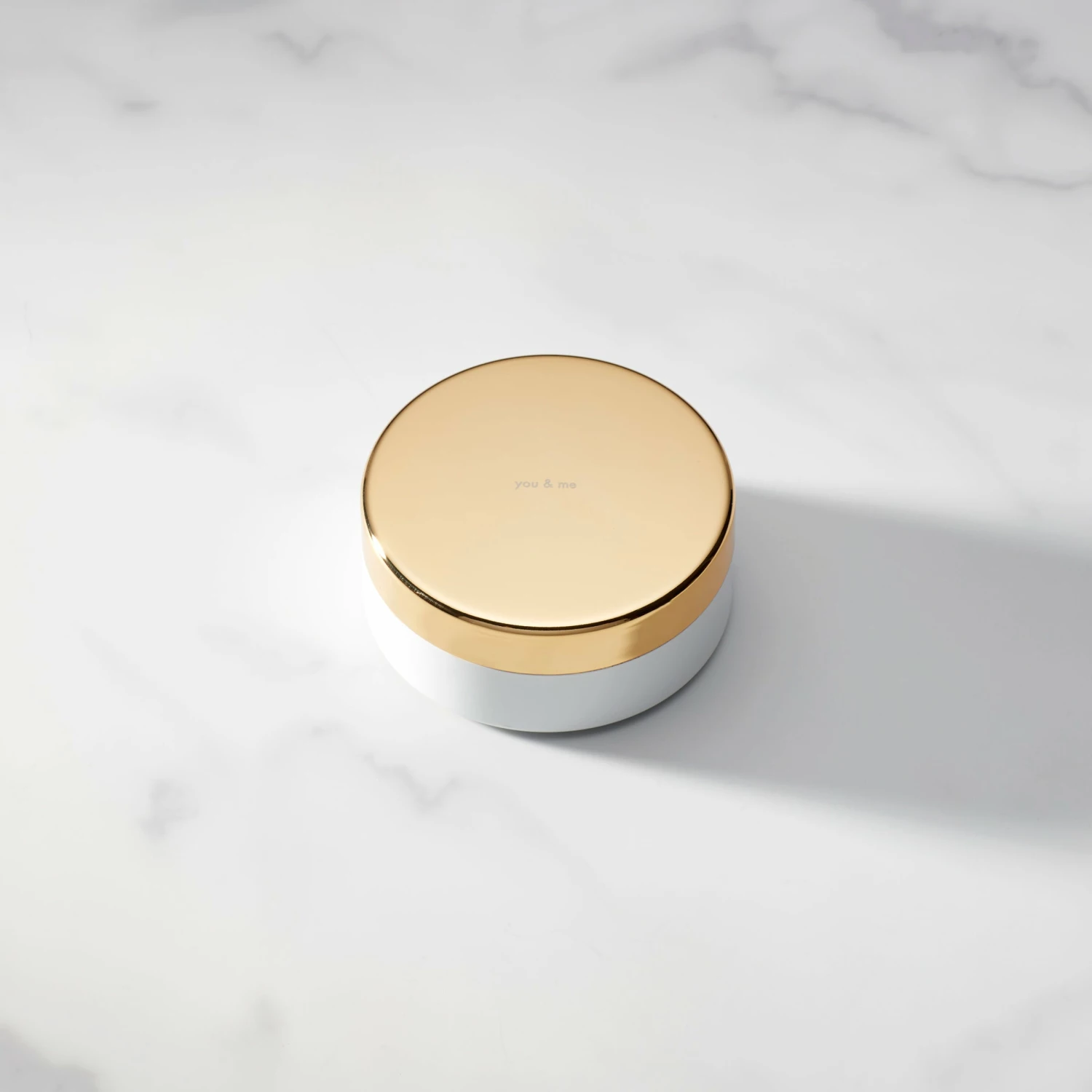 A treasure from Kate Spade New York, this two-tone keepsake box is perfect for holding your rings, bracelets and trinkets. It features a gold-plated cover with a modern white bottom. Etched at the center are the words “you & me” to make it an extra special gift for the newlywed or couple.