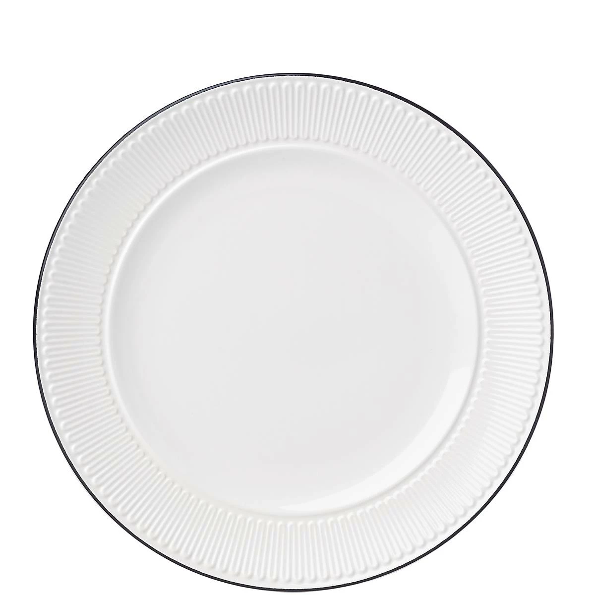 Grosgrain detailing, rich black trim, and a crisp white finish highlight this chic dinnerware from Kate Spade New York. Crafted from durable ironstone, the York Avenue Accent Plate is microwave and dishwasher-safe.